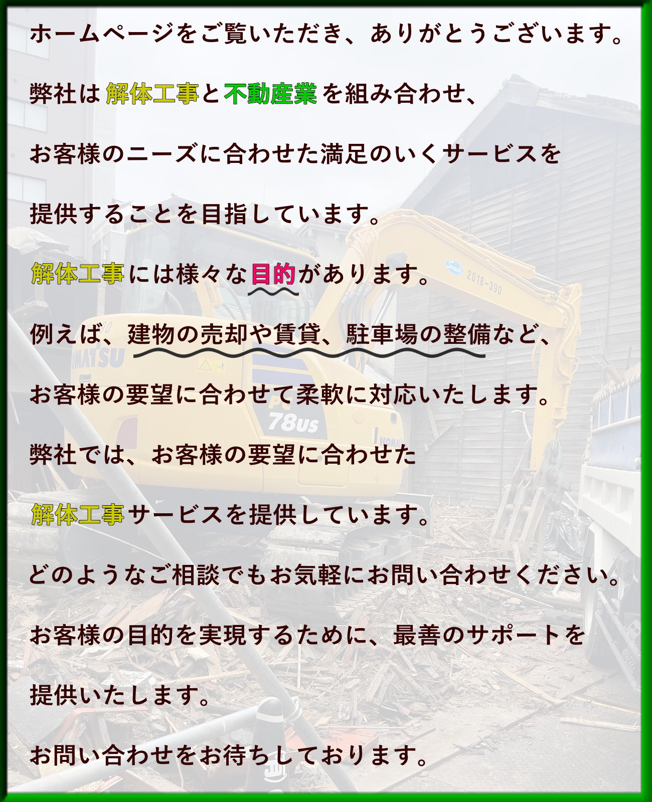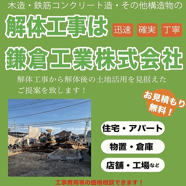 工務店や他社を通すより直接が安くなる基本です 解体・不動産はお任せください